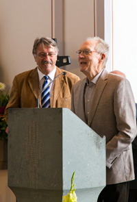 Der Vorsitzende des Pfarrgemeinderates Josef Redeker (links) stellte den Dank an die Gemeindemitglieder und an die vielen Ehrenamtler in den Fokus seines Statements. Besonders hob er dabei die Verdienste, den Dank und die Anerkennung an Bernhard Ameskamp (rechts) in den Vordergrund. In den fast 50 Jahren Jahren seines Wirkens hat er sich in den verschiedensten Funktionen in die Gemeinde erfolgreich eingebracht. Als ehemaliger Lehrer war er für die Messdiener- und Jugendarbeit prädestiniert. Als Vorsitzender des Pfarrgemeinderates (1977) und des Kirchenvorstandes in den letzten 12 Jahren, als Lektor, als Artikelschreiber des Pfarrbriefes „KONTAKTE“ und vielen anderen Tätigkeiten hat er sich in das Gedächtnis der Gemeinde tief eingegraben. Seine Herzensangelegenheit in all den Jahren war und ist die Ökumene mit den evangelischen Mitchristen.